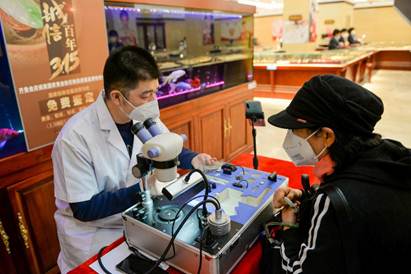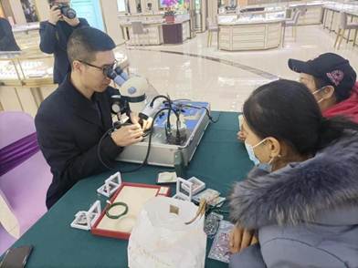 3月15日,山東省計(jì)量院國(guó)家黃金鉆石制品質(zhì)量檢驗(yàn)檢測(cè)中心結(jié)合黨支部“百年傳承 恒久閃耀”品牌化建設(shè),派出省級(jí)“青年文明號(hào)”專(zhuān)業(yè)技術(shù)人員赴濟(jì)南、濱州兩地開(kāi)展珠寶首飾免費(fèi)鑒定咨詢(xún)服務(wù),并向消費(fèi)者科普珠寶相關(guān)知識(shí)和解疑答惑,兩地共檢測(cè)珠寶玉石飾品500余件,涵蓋翡翠、和田玉、鉆石、紅寶石、祖母綠、碧璽、水晶等多個(gè)珠寶品類(lèi),技術(shù)人員憑借專(zhuān)業(yè)的知識(shí)講解和精準(zhǔn)的鑒定檢測(cè),為消費(fèi)者安心選購(gòu)珠寶提供了指導(dǎo),切實(shí)維護(hù)了消費(fèi)者的權(quán)益。