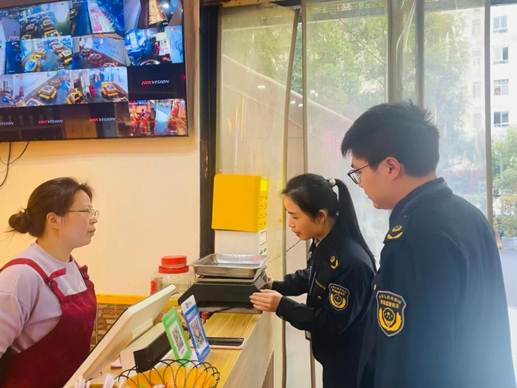 結(jié)合不同區(qū)域業(yè)態(tài)特點,執(zhí)法人員實行精準監(jiān)管、分類施策,織密食安與計量雙重防護網(wǎng):在農(nóng)貿(mào)市場,趕在早高峰前開展專項巡查,檢查生鮮、鹵菜、早餐等攤位32家,核驗秤具41臺,督促市場開辦方健全計量臺賬、落實主體責任,守好居民“菜籃子”安全與公平底線;在校園周邊,聚焦學生消費群體,規(guī)范散裝糕點、水果撈、炒貨等商戶17家,手把手向200余名學生普及計量維權(quán)技巧,提升青少年自我保護意識;在環(huán)湖綠道沿線夜宵街區(qū),緊扣專項行動節(jié)點開展夜間突擊檢查,檢查烤魚、串串等熱門餐飲業(yè)態(tài)19家,核查秤具27臺,糾正不規(guī)范稱重行為4處,守護市民夜間飲食消費安全;在老字號餐飲店,重點檢查簡陽羊雜店、巴人冒菜店等8家老店,引導經(jīng)營者堅守“準秤足兩”底線,以誠信口碑守護品牌、傳承食安文化。