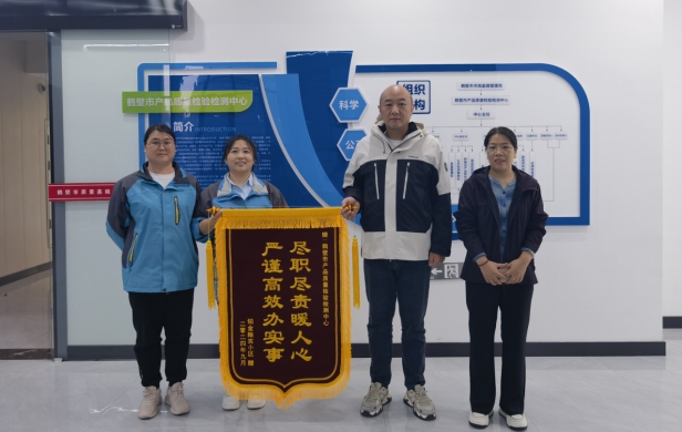 10月15日,鶴壁市淇濱區(qū)鉑金翰宮物業(yè)公司將一面印有“盡職盡責暖人心 嚴謹高效辦實事”的錦旗送至市產(chǎn)品質(zhì)量檢驗檢測中心,對我中心技術(shù)人員嚴謹?shù)墓ぷ髯黠L、優(yōu)質(zhì)的服務態(tài)度以及專業(yè)的技術(shù)能力表達誠摯的謝意。