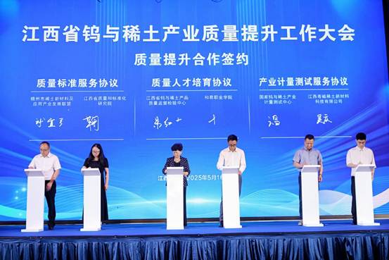 會上,國家鎢與稀土產(chǎn)業(yè)計量測試中心聯(lián)合國家鎢與稀土產(chǎn)品質(zhì)檢中心等單位與江西省質(zhì)量和標(biāo)準(zhǔn)化研究院、江西粵磁稀土新材料科技有限公司、和君職業(yè)學(xué)院就質(zhì)量標(biāo)準(zhǔn)服務(wù)、產(chǎn)業(yè)計量測試服務(wù)、質(zhì)量人才培育簽訂“戰(zhàn)略合作協(xié)議”,攜手鎢與稀土產(chǎn)業(yè)共同邁向質(zhì)量提升和高質(zhì)量發(fā)展新征程。