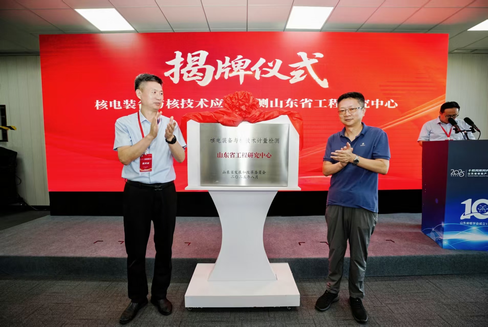8 月 22 日下午,山東省核能產(chǎn)業(yè)高質(zhì)量發(fā)展大會在青島順利召開。煙臺市標(biāo)準(zhǔn)計量檢驗檢測中心作為副理事長單位,受邀參加此次會議,助力推動核能領(lǐng)域產(chǎn)學(xué)研用深度融合與行業(yè)高質(zhì)量發(fā)展。核電裝備領(lǐng)域唯一省級工程研究中心同期揭牌。