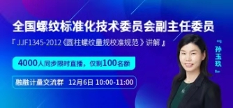 如果您想學(xué)習(xí)螺紋基礎(chǔ)知識,理解JJF1345-2012《圓柱螺紋量規(guī)校準(zhǔn)規(guī)范》,小編誠摯地邀請你本周五(12月6日)上午10:00-11:00來聽第二次計(jì)量線上免費(fèi)公開課。