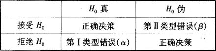 根據(jù)樣本資料對零假設(shè)作出接收或拒絕的決定時,可能會出現(xiàn)以下4種情況: