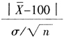 H0:μ=μ0=100 H1:μ≠100