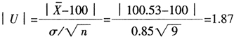 如果取α=0.05,由標(biāo)準(zhǔn)正態(tài)分布表可以查到U0.975=1.96。本題中n=9,σ=0.85,