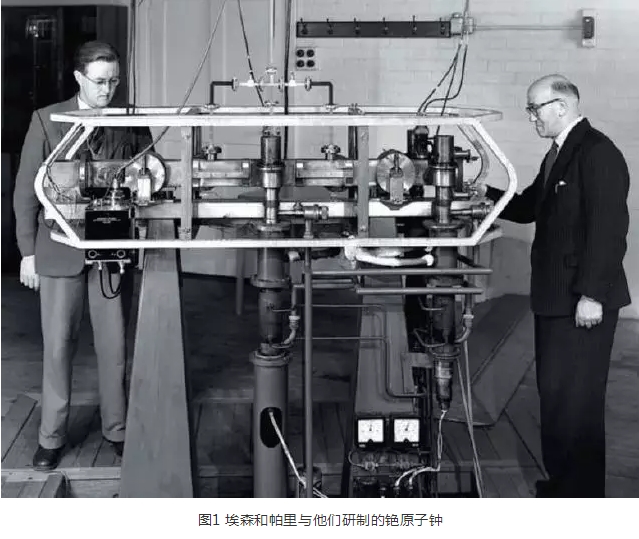 圖1 埃森和帕里與他們研制的銫原子鐘