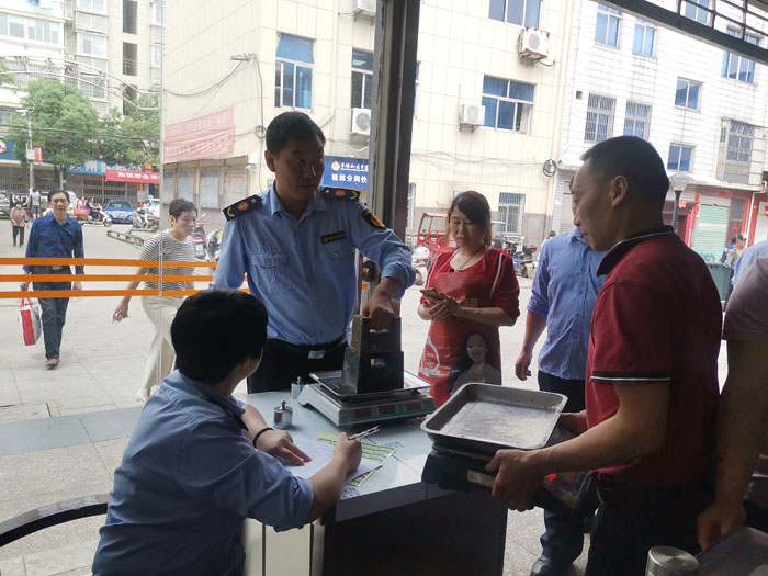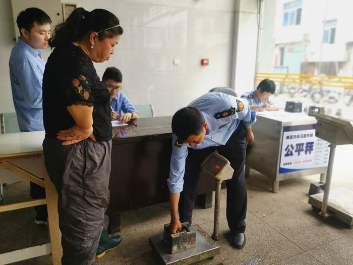 “計(jì)量器具涉及千家萬(wàn)戶,一旦計(jì)量器具出現(xiàn)偏差,將嚴(yán)重影響人民群眾的利益?!比鸩斜O(jiān)局 開(kāi)展了計(jì)量系列活動(dòng)。5月15-17日瑞昌市場(chǎng)監(jiān)管局在城區(qū)和碼頭集貿(mào)市場(chǎng)開(kāi)展了衡器現(xiàn)場(chǎng)檢定活動(dòng),此次檢定活動(dòng)共檢定電子計(jì)價(jià)秤、公平秤共計(jì)580余臺(tái)。經(jīng)檢定合格的電子秤在顯注位置粘貼瑞昌市場(chǎng)監(jiān)管局計(jì)量所計(jì)量檢定合格證。