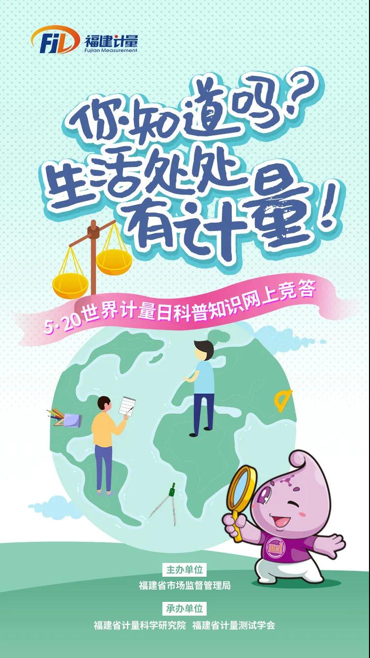 今年福建省市場監(jiān)管局將與省計(jì)量科學(xué)研究院、省計(jì)量測試學(xué)會攜手開展“5·20計(jì)量科普知識網(wǎng)上競答”活動,活動于5月18日啟動,并將一直持續(xù)至5月22日。