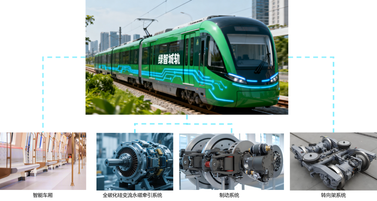 該綠智城軌車輛集成軸箱內(nèi)置式架懸直驅(qū)轉(zhuǎn)向架、全碳化硅變流永磁牽引、電機(jī)械制動等38項前沿技術(shù),具備安全可靠、智慧先進(jìn)、綠色節(jié)能、舒適便捷等特質(zhì),是我國低碳環(huán)保型城軌裝備的標(biāo)桿產(chǎn)品,對推動軌道交通自主創(chuàng)新與產(chǎn)業(yè)規(guī)范化發(fā)展具有重要示范意義。