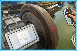為進一步確保數(shù)據(jù)可靠,團隊搭配高精度數(shù)顯千分尺、標準量塊,對輪緣厚度、輪轂直徑等關(guān)鍵點位進行“二次核驗”,將非接觸掃描數(shù)據(jù)與接觸測量結(jié)果交叉比對,形成完整的量值溯源閉環(huán),徹底杜絕單一測量可能存在的誤差。