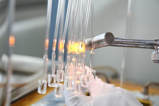 這是一個再平常不過的玻璃加工場面。即使現(xiàn)在高科技手段越來越多,銣泡玻璃加工也只能依靠人工完成。燒制玻璃是門非常了不起的手藝活,看似簡單的玻璃管對接,涉及到調(diào)火候,判斷玻璃的膨脹系數(shù),玻璃管過火時間,玻璃管在什么狀態(tài)下可以又快又好對接在一起......全憑玻璃工的多年經(jīng)驗(yàn)。光有經(jīng)驗(yàn)還不行,手法的快慢變化,兩手配合的靈活性,手速與通氣量大小的配合……這些玻璃操作技術(shù),沒有幾年的刻苦練習(xí),很難出徒。“臺上一分鐘,臺下十年功”航天科工203所玻璃工張文沖深有體悟地說道。