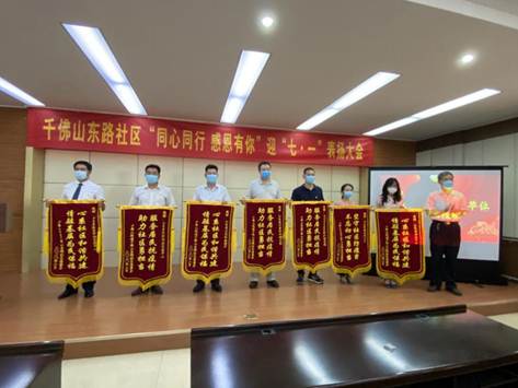 6月29日,濟南市歷下區(qū)千佛山東路社區(qū)黨委組織開展“同心同行 感恩有你”迎“七一”表揚大會,山東省計量科學研究院被評為“千佛山東路社區(qū)抗疫模范先進單位”并獲得“服務居民抗疫情 助力社區(qū)勇?lián)敗睒s譽錦旗。