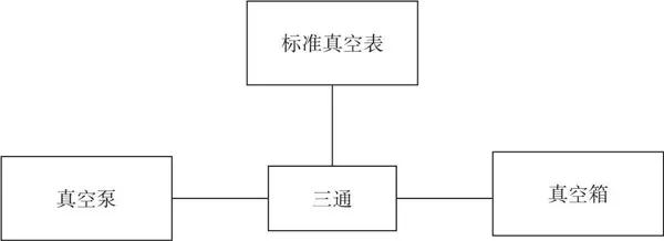 一般真空干燥箱均配置有真空泵,用真空膠管連接真空箱與真空泵的吸氣口,使整個真空系統(tǒng)處于密封狀態(tài)。檢測真空箱所配套的真空表時,用三通(或其他同功能器件)將標(biāo)準(zhǔn)真空表連接進(jìn)入這個真空密閉系統(tǒng),使其再次成為一個閉合回路(見圖2) 。