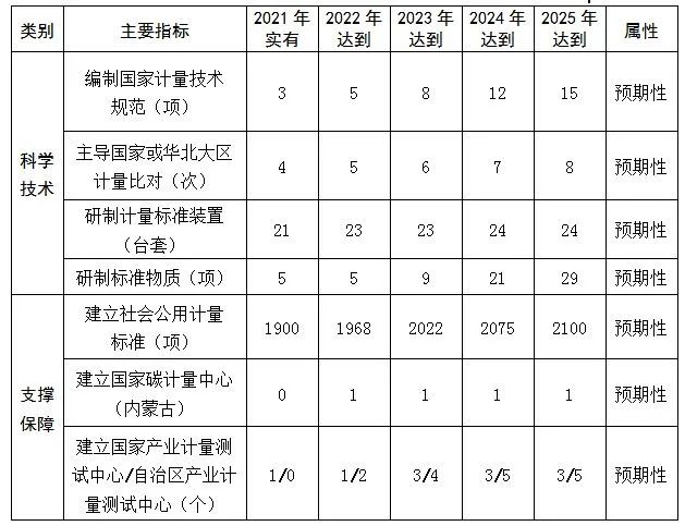 內(nèi)蒙古自治區(qū)“十四五”計(jì)量發(fā)展主要指標(biāo)